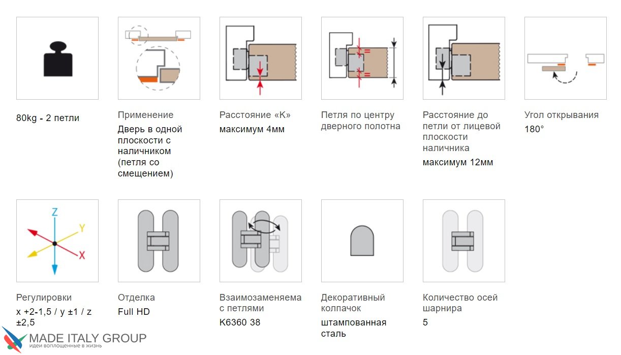 | Макс. нагрузка на 2 петли (в Кг) | 80 |
